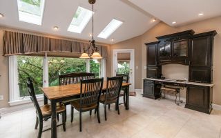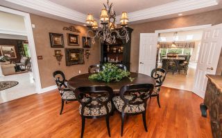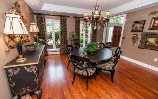 · Formal Hardwood Floor Dining Room with Tray Ceiling, Faux Finish, Recessed Lighting, extensive Crown Moldings & French Doors to the Kitchen