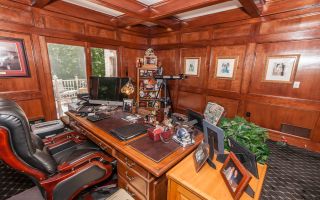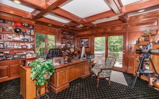 · Private 1st Floor Den with Box Beam Ceiling, rich Cherry Judges Paneling, Built-in Bookcases & Window Seat, Utility Jacks in Floor, 11 Phone lines plus Fax/Modem and Deck access
